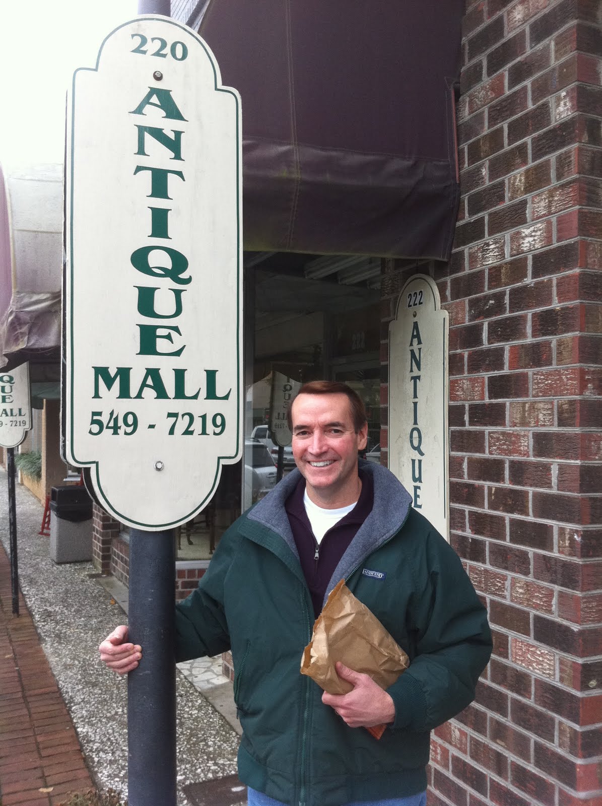 The bag I’m holding contains two books I bought and not any antiques I discovered.
