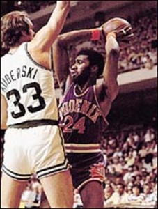 5. Phoenix Suns, mid 1970s. Purple with orange trim and a logo on the the shorts that was supposed to look like the sun. Led by Gar Heard and Paul Westphal, they almost beat the Celtics in 1976.