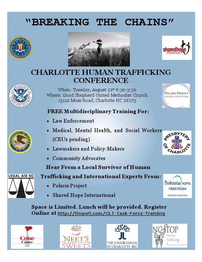 So: during the first week in September, Charlotte will not only be in the middle of the political world but in the tragic epicenter of 21st Century slavery and forced prostitution.
