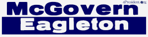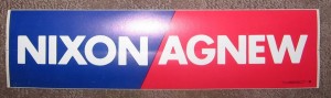 But there’s a problem with that one: it says McGovern-Eagleton. He was George McGoverns’ first nominee for Vice President. If you have a first and a second nominee for VP, you’re in trouble. So was McGovern. It turned out that Tom Eagleton had had shock therapy treatment in his early years, and so he had to abandon the race. Sargeant Shriver took his place but the damage was more than done. I still remember shaking McGovern’s hand (I told you my family was into this!) and thinking that any sane person would vote for him.