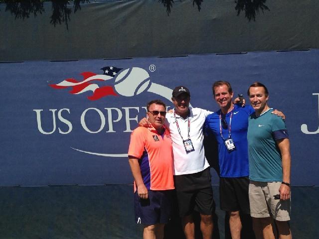 - Texas Tennis Friends — In 1979, Craig Kardon and I won the Texas State Doubles Championship for Boys’ 18-and-under. He’s gone on to a high profile career as a tennis coach, working in earlier years with Martina Navratilova and Ana Ivanovic and currently with Coco Vandeweghe. Through the magic of Twitter, Craig and I have reconnected and we planned a rendezvous in Flushing Meadow. What I wasn’t counting on, however, was the appearance of two other former rivals/friends — Chris Huff and Vince Menard — guys I had figured I would never see again. And yet there they were, and there our conversations quickly zeroed in on matches won and lost, grudges held and released, friendships forgotten and renewed. Here are the four of us: