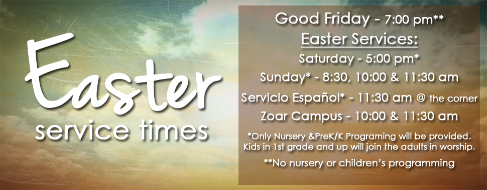 Then our Resurrection celebrations begin on Saturday at 5 p.m. and continue Sunday morning with six more celebrations in two locations (four at Moss Road and two at the Grand Opening of Zoar Road). All of those services will feature the culmination of the Jaw Dropper series, The Nonsense Miracle. I will be live on Moss and “like live” on Zoar. Sammy Gonzalez, of course, will be live at the Corner!