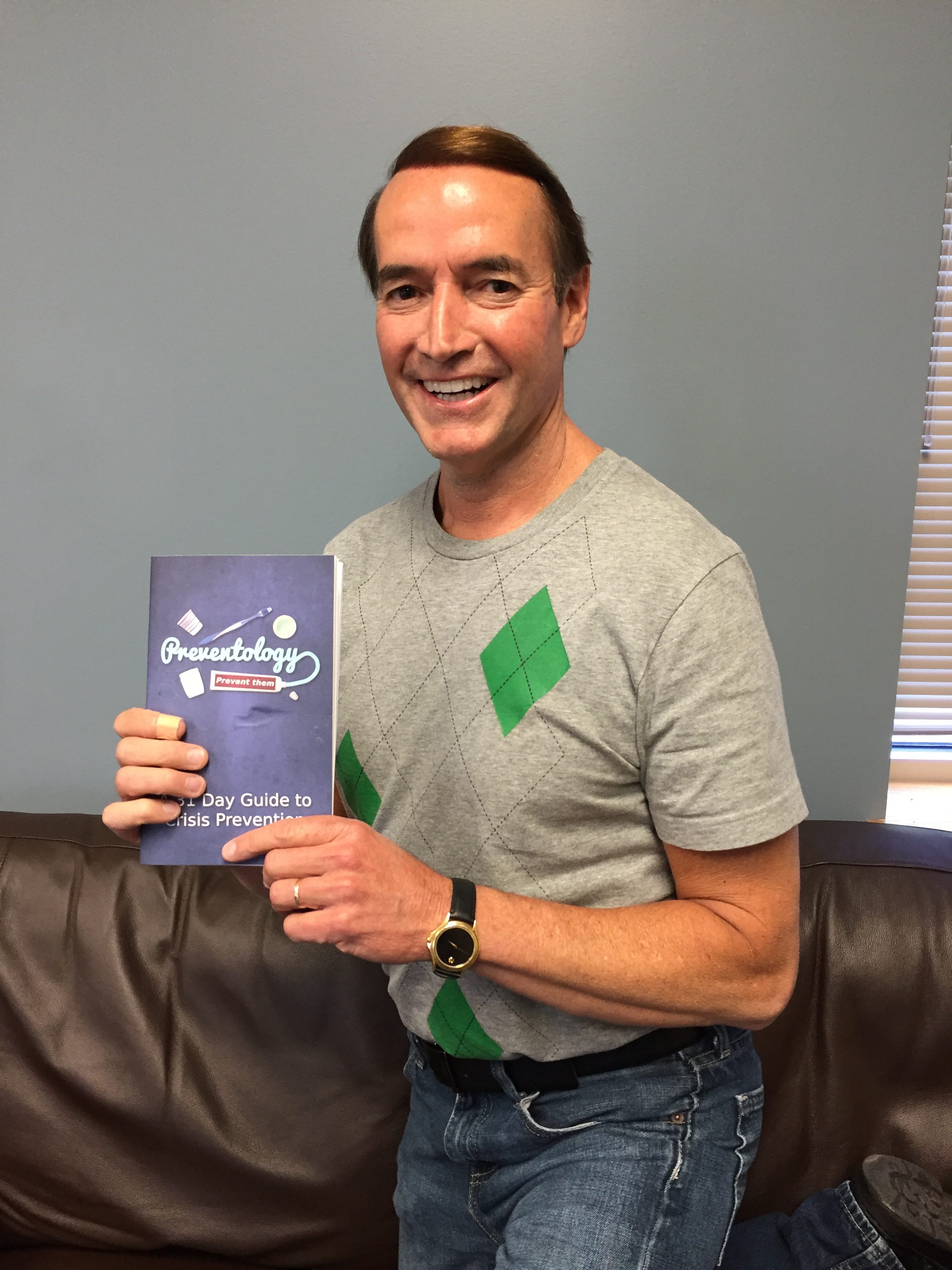 This is me (obviously) holding our church’s booklet, “Preventology: A 31 Guide To Crisis Prevention.”