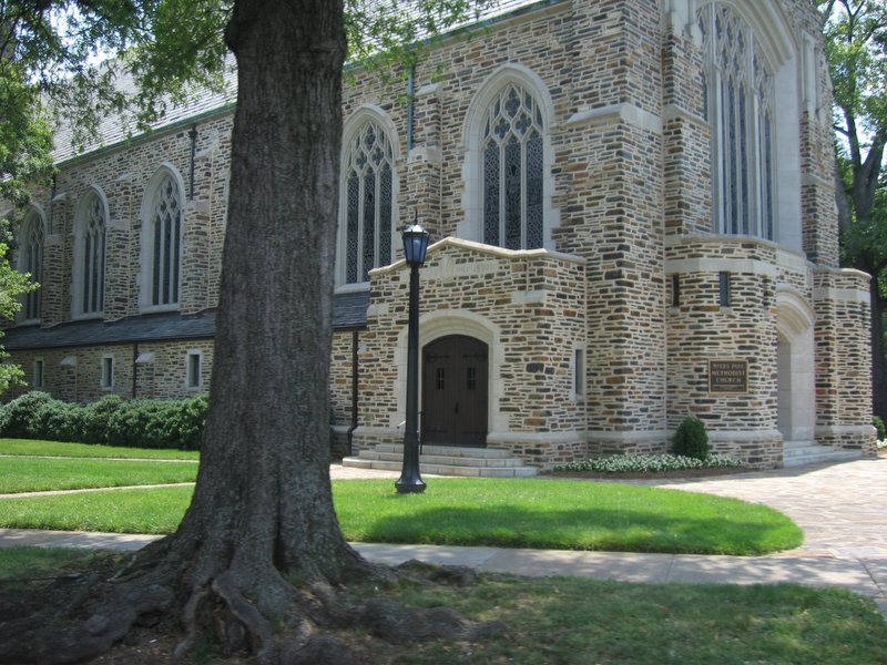 Anyway, Myers Park United Methodist Church hosted the celebration. And Myers Park UMC is a completely different world from Good Shepherd. That becomes obvious upon seeing the gorgeous exterior architecture: