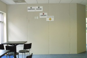 We considered various classrooms, alcoves, offices, and even closets. None of them had that combination of visibility and privacy that a prayer room needs.