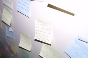We had post-it notes all over the Worship Center on Christmas Eve.
